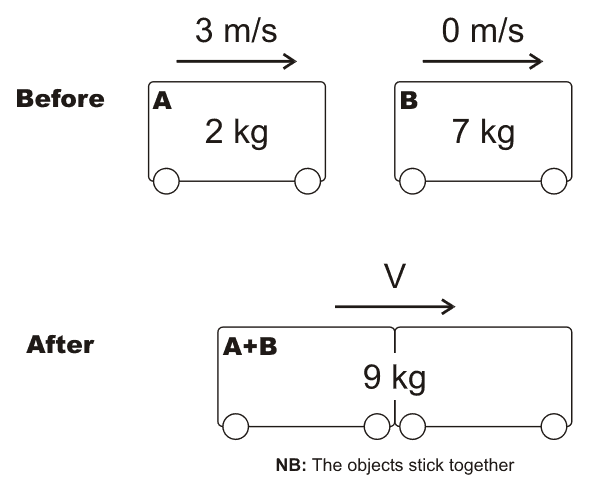 The principle of "The Conservation of Momentum" tells us that the total momentum before a collision equals the total momentum after the collision. We can use this to find the velocity of objects after a collision.