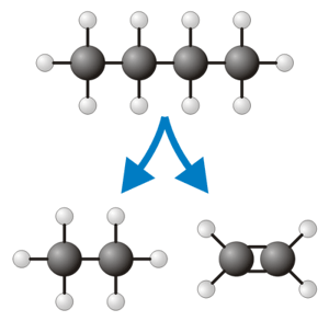 This process involves heating the hydrocarbons to vaporise them and passing the vapours over a hot catalyst. A catalyst is a chemical that speeds up a reaction without being used up or changed itself and allows the reaction to happen at a cooler temperature.