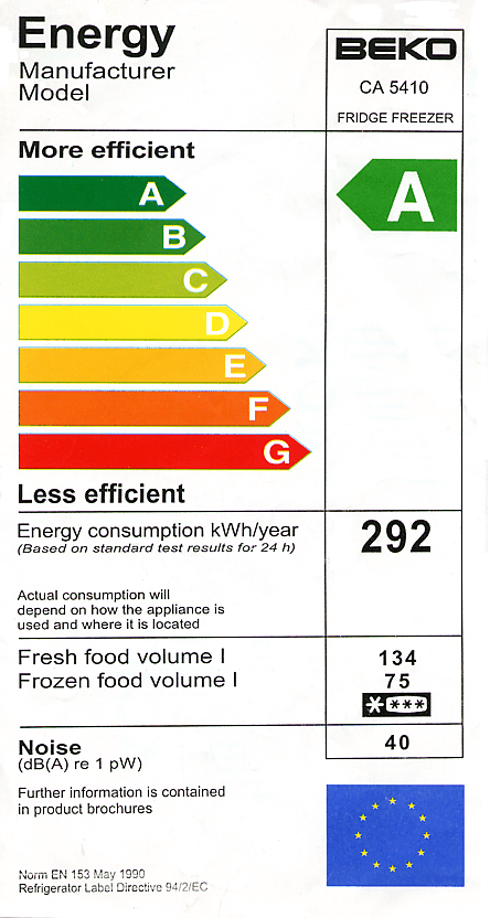 When buying a new kitchen appliance we often see efficiency ratings of A-E for different aspects of the appliance. In physics we use a percentage figure. We calculate this using the following equation: